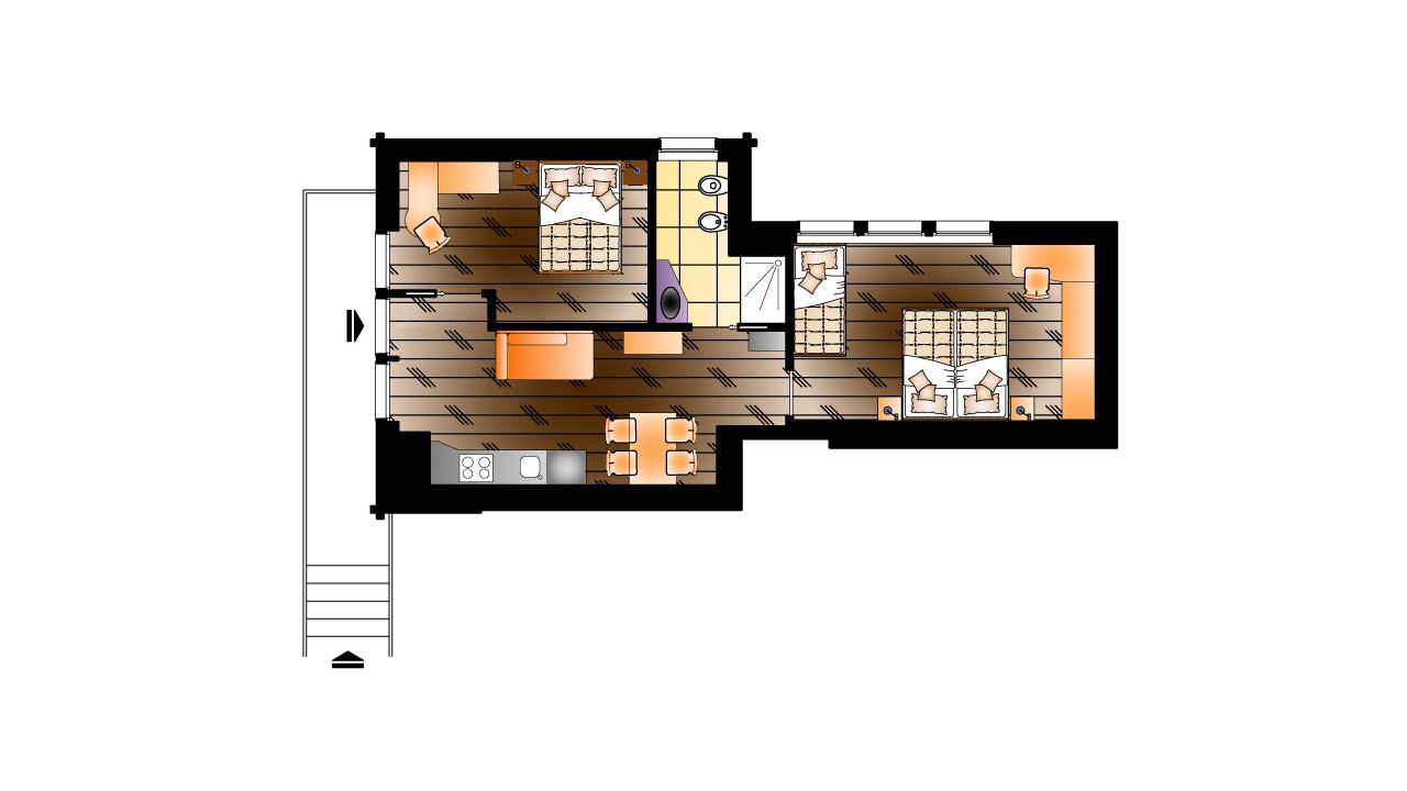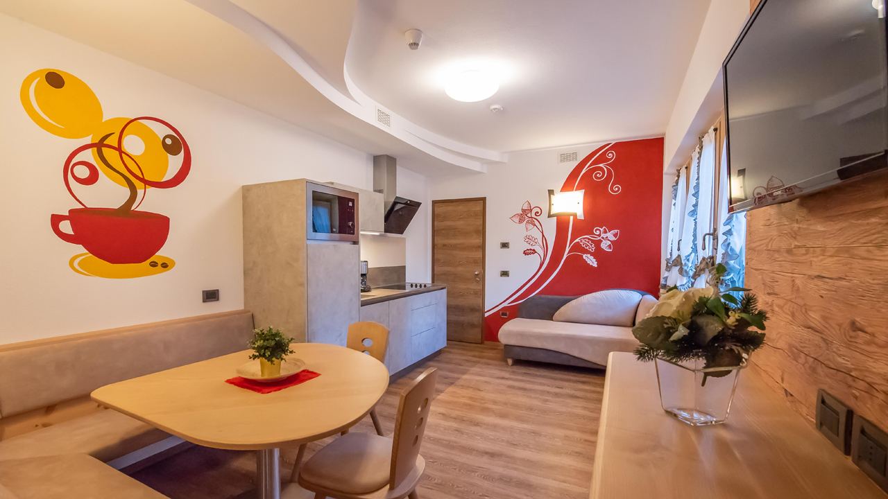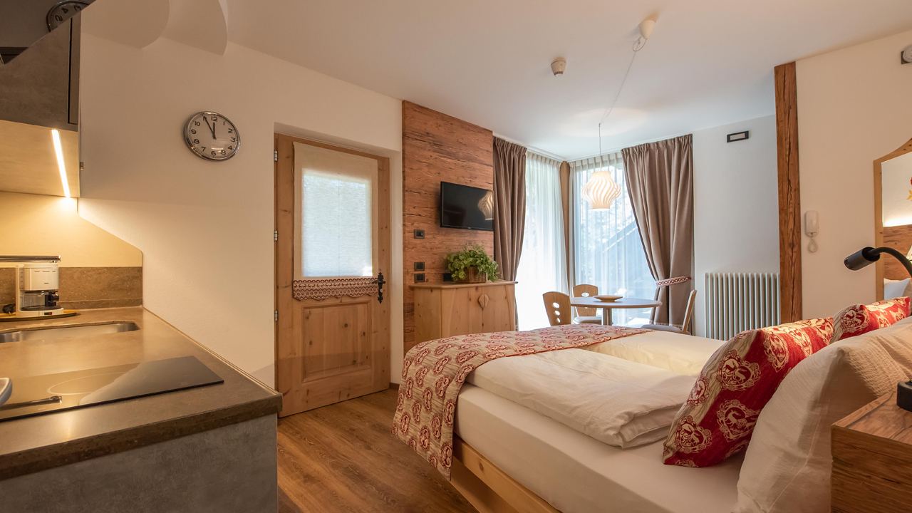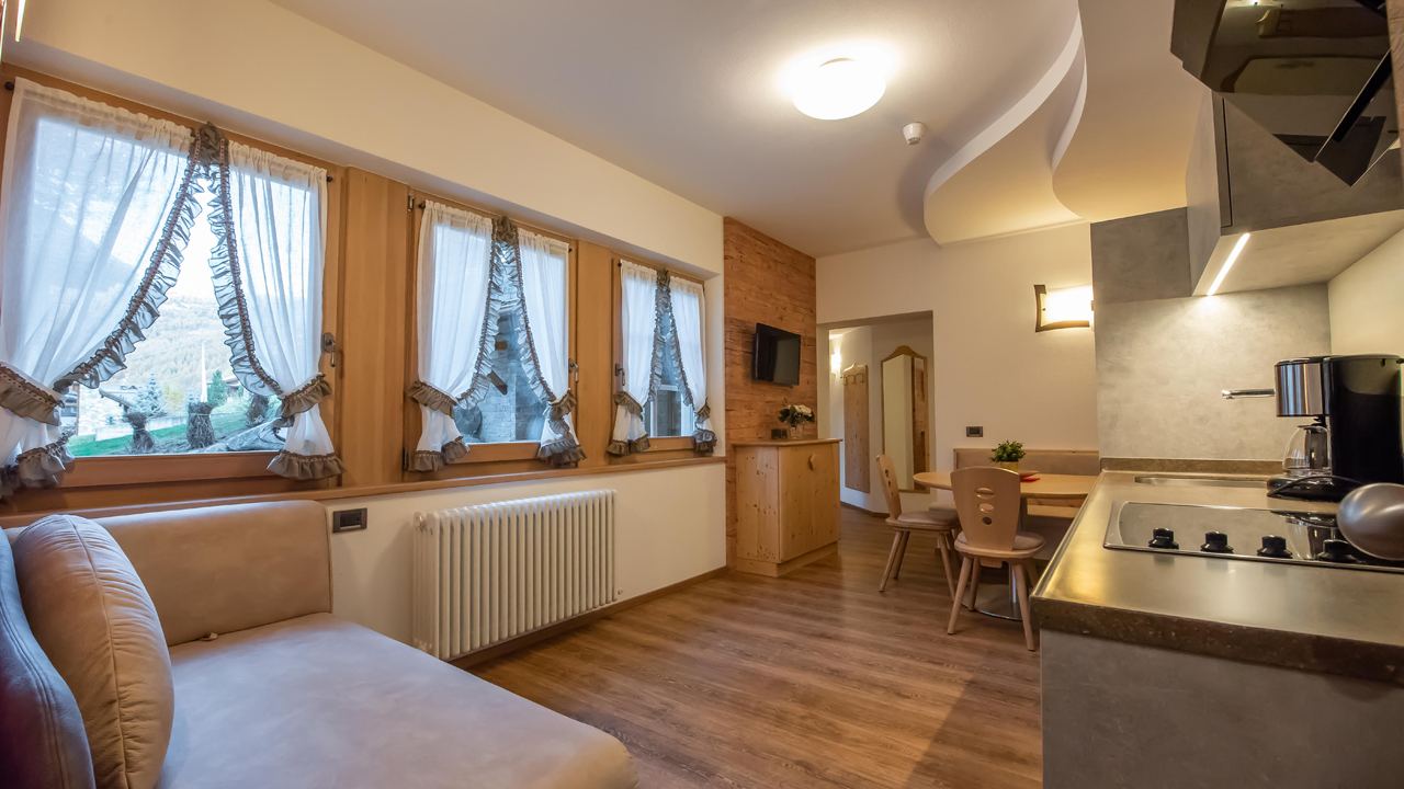 Il monolocale Lach è l'ideale per una vacanza in famiglia o tra amici. Luminoso monolocale al piano terra con giardino all'esterno, arredato in raffinato stile montano con vista sul versante alpino di Livigno. Comodi letti, angolo cucina e bagno.
