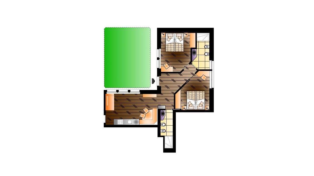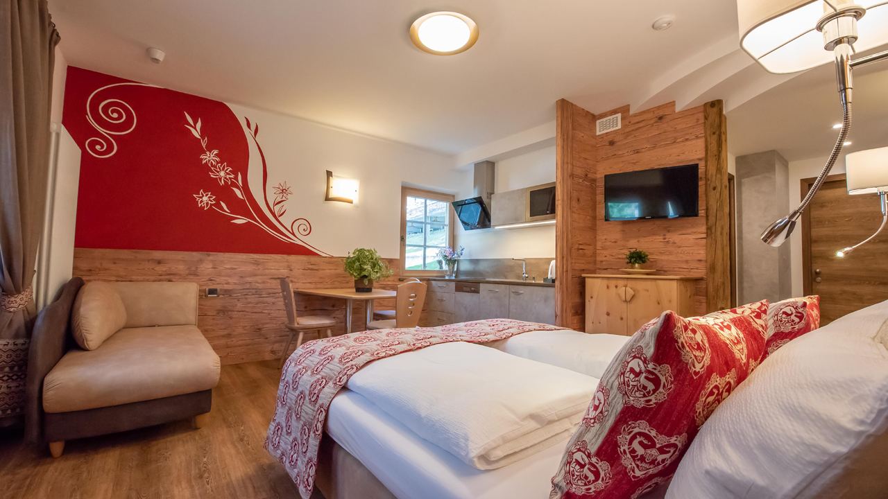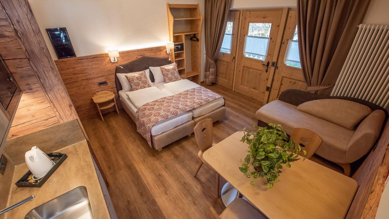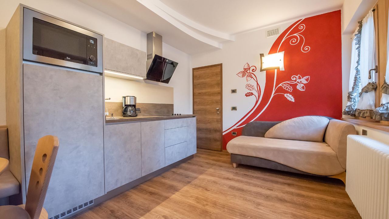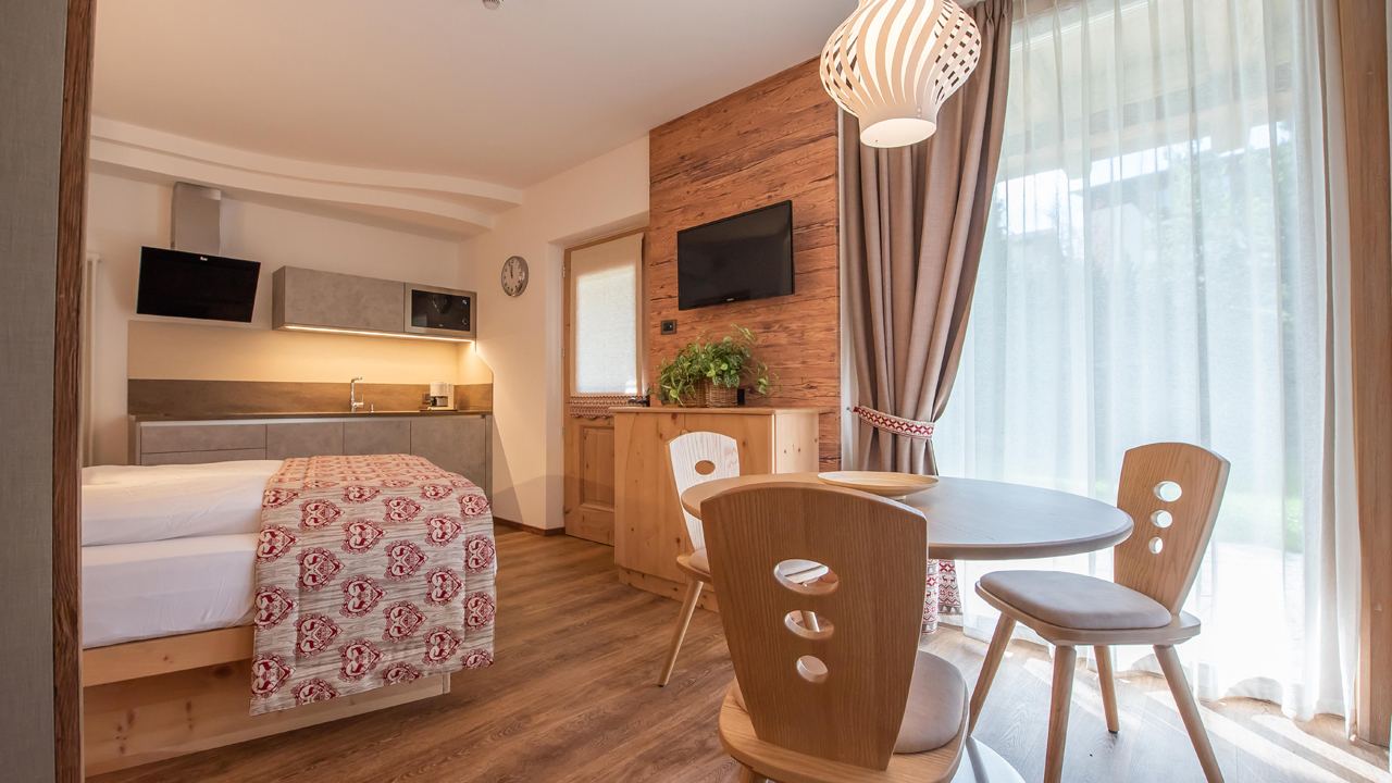 Il monolocale Lach è l'ideale per una vacanza in famiglia o tra amici. Luminoso monolocale al piano terra con giardino all'esterno, arredato in raffinato stile montano con vista sul versante alpino di Livigno. Comodi letti, angolo cucina e bagno.